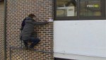 A 5 włażenie po rynnie - prawie nie widać gdzie szły liny (oprócz tej chwili, kiedy widać, bo są bardzo źle rozmyte )